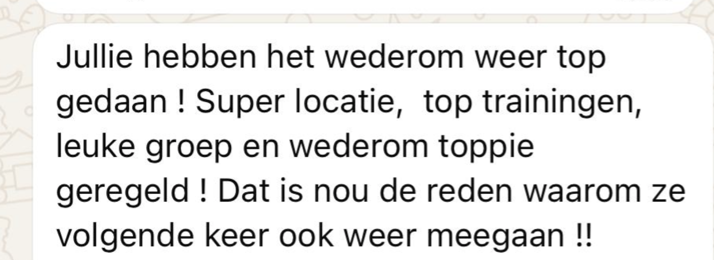 Wat je niveau ook is, als jij de motivatie hebt om jezelf te verbeteren en openstaat voor feedback, dan is dit kamp voor jou.