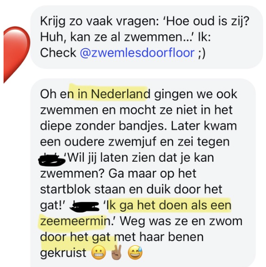 Stel mij vragen en krijg support, kom in contact met andere ouders, deel je struggles of juist overwinningen met anderen om alles uit jullie zwemles reis te halen!
