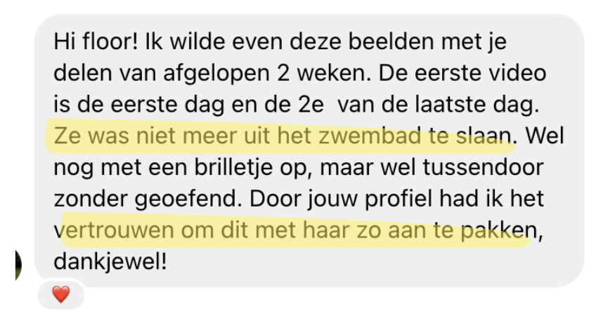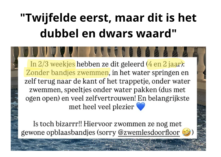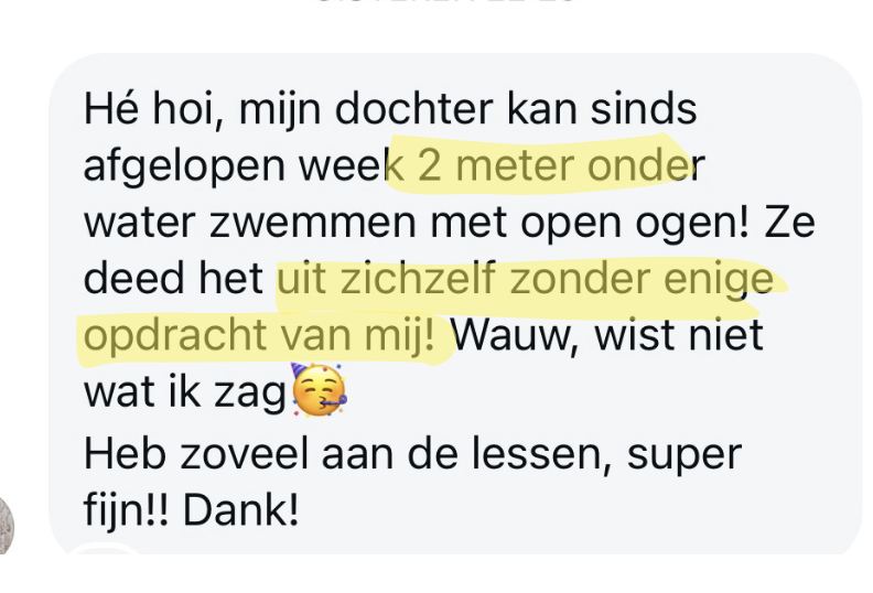 En, bijkomend voordeel; je bespaart je zelf letterlijk 4-6 maanden zwemles en zo'n +/- €400