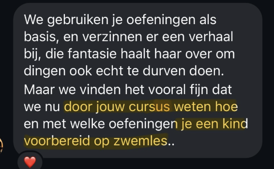 En, bijkomend voordeel; je bespaart je zelf letterlijk 4-6 maanden zwemles en zo'n +/- €400