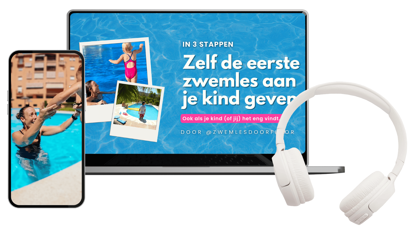 Ik leer je in een aantal korte video's hoe jij zelf de eerste zwemlessen aan je kind geeft. Waarmee jouw kind zichzelf kan leren redden zonder drijfmiddelen. Zodat jij met plezier en een gerust hart aan de rand van het zwembad kunt zitten, kijkend naar je kind dat volop geniet van het water.