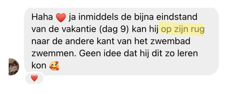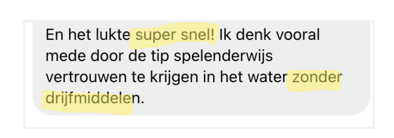 Nee, want je leert hier geen zwemslagen. Hiervoor verwijs ik je door naar mijn 'Oefenen voor A' zwemlescursus (medio oktober '25 beschikbaar).
