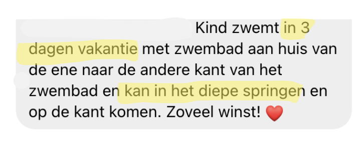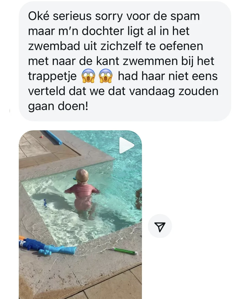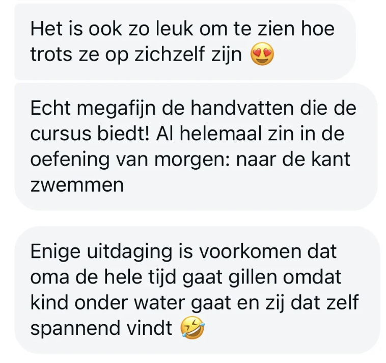 En, bijkomend voordeel; je bespaart je zelf letterlijk 4-6 maanden zwemles en zo'n €600