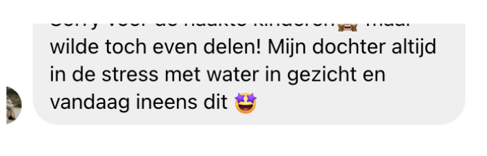Maar ook voor de oudere kinderen die het eng vinden met gezicht onder water te gaan werkt het enorm goed, omdat je hen letterlijk de controle over het water kan uitleggen en voordoen op een manier die ze ook begrijpen, in plaats van alleen voelen.